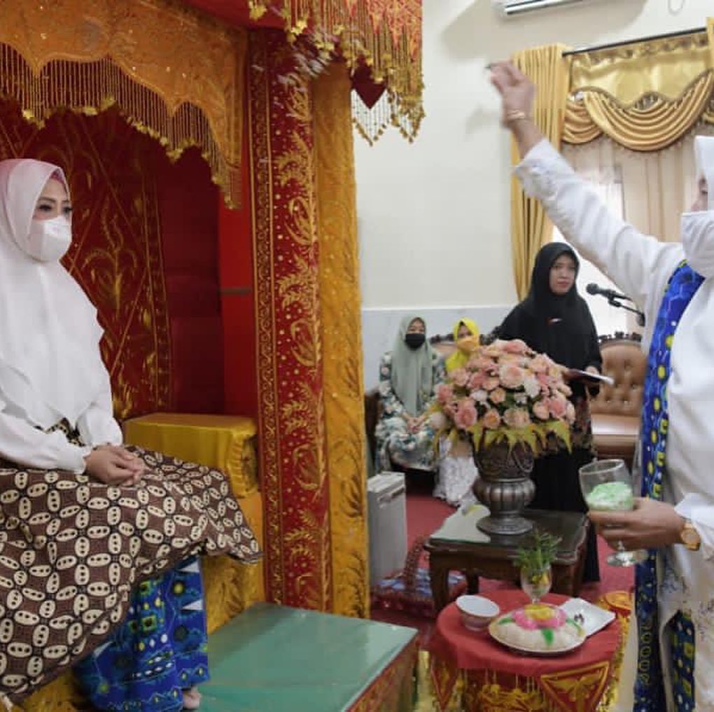 "Alhamdulillah...Ibu hari ini bisa naik pelaminan adat Aceh lagi. Hehe. Tapi... kali ini Ibu naik pelaminan untuk dipeusijuk sesuai dengan adat masyarakat di Aceh Barat Daya dalam menyambut tamu. Senang rasanya mereka masih melestarikan budayanya yang kental ini.," tulisnya bangga.